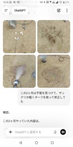 その間に不陸修正がてらゴルフのアプローチ練習を兼ねて不陸修正をしていたけど