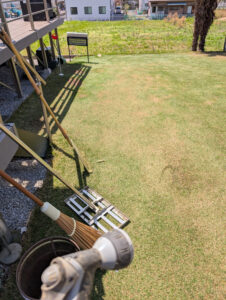 来週は入れた目土・目砂の馴染み具合の確認と葉の伸び具合次第で刈込みをするかもしれない。