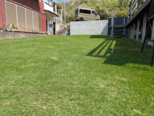 今年は敷地中央はそのままだけど、端の方は食害かつアプローチ練習もしたいので別の種を撒いてるから次第に埋まってくると思うんだけど。
