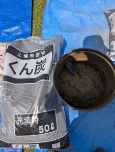 量が足りるか不安なので、元々の粘土土も床土に少し混ぜていく。