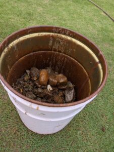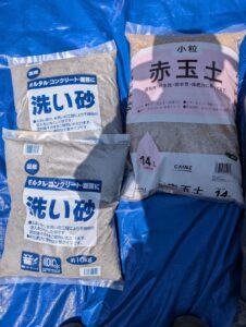 土自体も粘土質かつ砂利だらけでいい土とは言えないので、目土だけじゃなく床土も準備する。