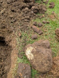始めの一か所目を超える石が出てくる。んで地表から5cmあるか?って所。